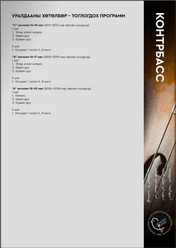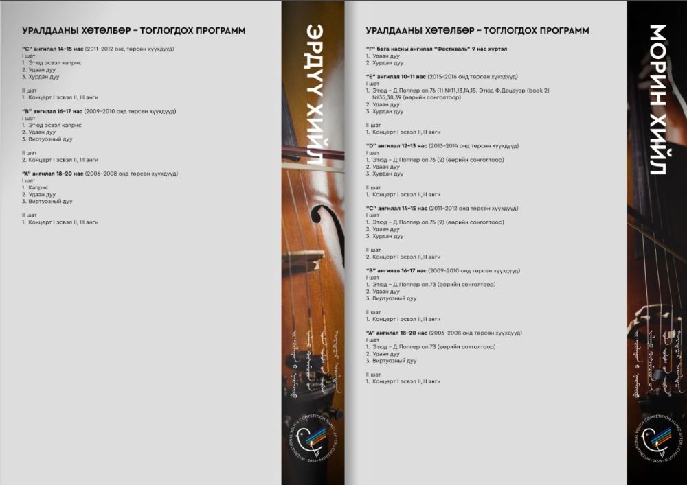 Монголын нэрт хөгжмийн зохиолч, хийлч, удирдаач, сурган хүмүүжүүлэгч, Ардын жүжигчин, Төрийн шагналт Ж.Чулуун агсны нэрэмжит залуу хөгжимчдийн олон улсын уралдаан 2026 онд зохион байгуулагдахаар боллоо!