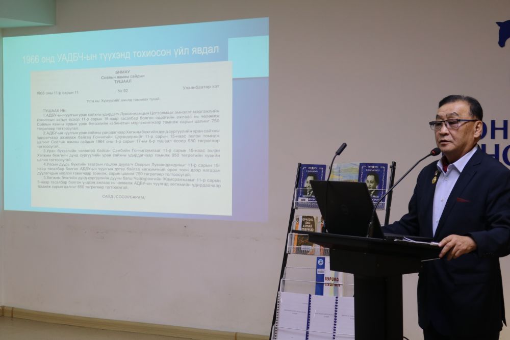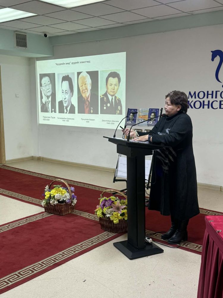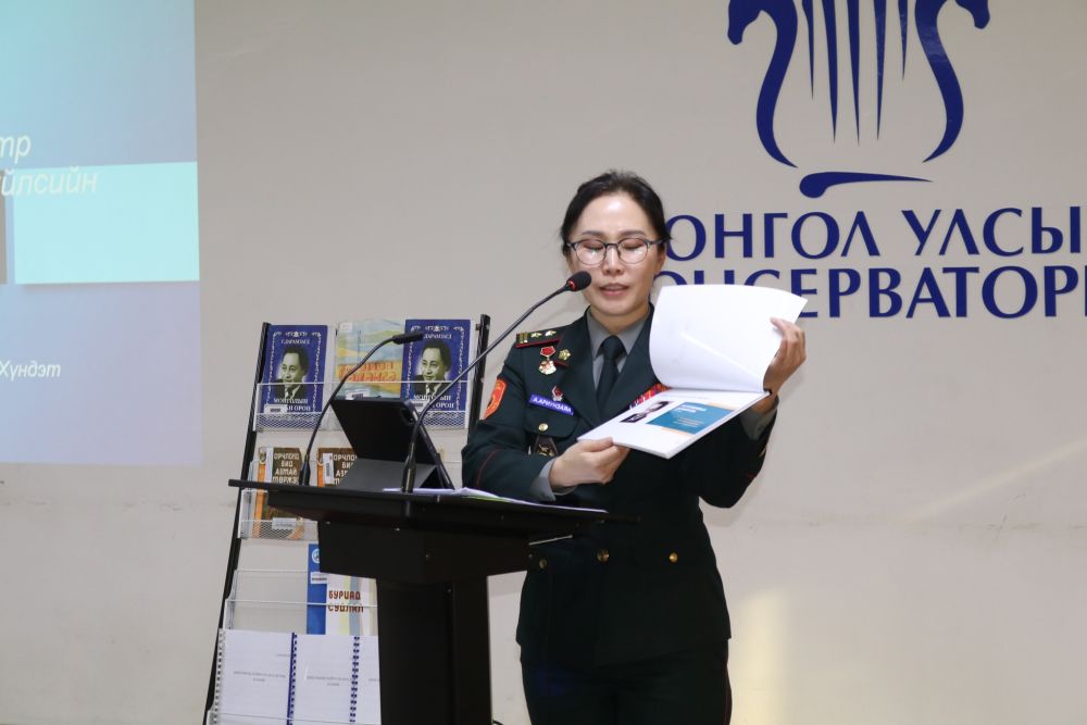 “ГОНЧИГДАМБЫН ДАРАМЗАГДЫН НАМТАР, БҮТЭЭЛИЙН ӨВ СУДЛАЛ” ЭРДЭМ ШИНЖИЛГЭЭНИЙ ХУРАЛ Монголын хөгжмийн зохиолч, найрал дууны удирдаач Гончигдамбын Дарамзагдын намтар, уран бүтээлийн өв, Монголын хөгжмийн урлагт оруулсан хувь нэмрийг судлан сурталчлах, түгээн дэлгэрүүлэх зорилгоор энэхүү эрдэм шинжилгээний онол-практикийн бага хурлыг Монгол Улсын Консерватор, Г.Дарамзагд урлагийн сан хамтран 2025 оны 11 дүгээр сарын 14-ний өдөр Консерваторын Номын санд амжилттай зохион байгууллаа.