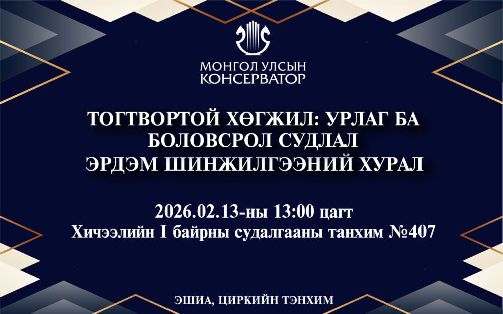 Монгол Улсын Консерватор нь багш нарын эрдэм шинжилгээ, судалгааны ажлыг идэвхжүүлэх, чадавхыг дээшлүүлэх, сургалт-судалгааг уялдуулах, шинжлэх ухааны шинэ мэдлэг түгээх, докторын зэрэгтэй багш нарын тоо, эзлэх хувийг нэмэгдүүлэх зорилгоор 2025-2026 оны хичээлийн жилд нийт багш нарын дунд “Урлагийн боловсрол, заах арга зүй; Орчин үе-Урлаг судлал” асуудлын хүрээнд тэнхим бүрд эрдэм шинжилгээний хурлыг зохион байгуулахаар удирдамжийг хүргүүлсэн билээ. Энэхүү үйл ажиллагаатай уялдаж Циркийн тэнхим 2026 оны 02 сарын 13-ны өдөр эрдэм шинжилгээний хурлыг зарлан илтгэлээ хэлэлцүүлэхэд бэлэн боллоо.